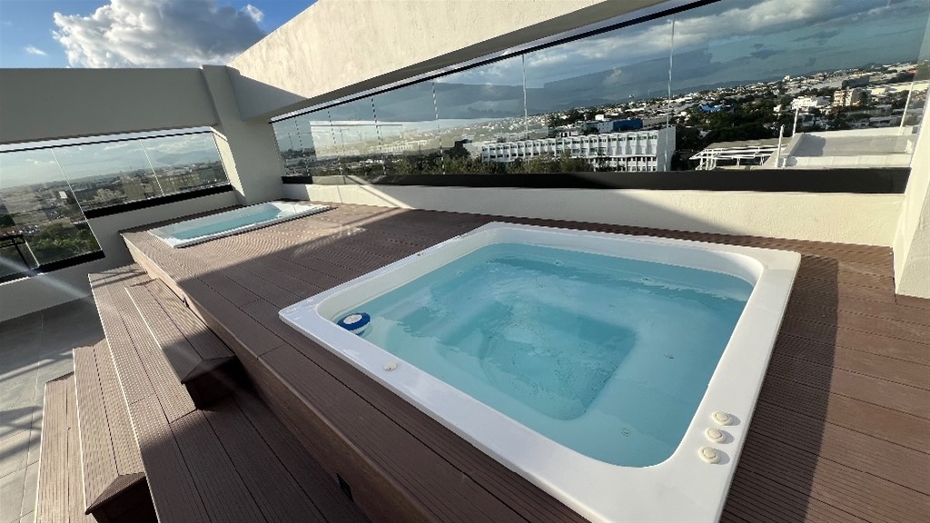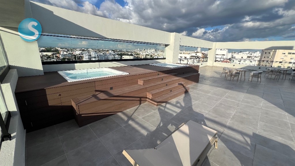 PARA ESTRENAR!! 2 habitaciones con su baño más medio baño de visita y un parqueo techado más cuarto de servicio con baño Características Generales • Lobby de entrada amueblado • Área social tipo Rooftop techada y destechada con 2 jacuzzi y bbq. • Área infantil • Gimnasio • Salón Lounge • Working Space • Ascensor de última generación • Planta full • Sistema de cámaras de seguridad • Pozo tubular • Gas común • Control de acceso • Sistema contra incendio Terminaciones de los Apartamentos • Pisos en porcelanato • Cocinas modulares con desayunador • Tope de cocina en granito con backsplash • Puertas y closets en madera preciosa • Grifería importada • Muebles de baños • Pre-instalación de aires acondicionados en habitaciones • Calentadores de gas