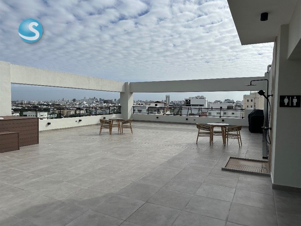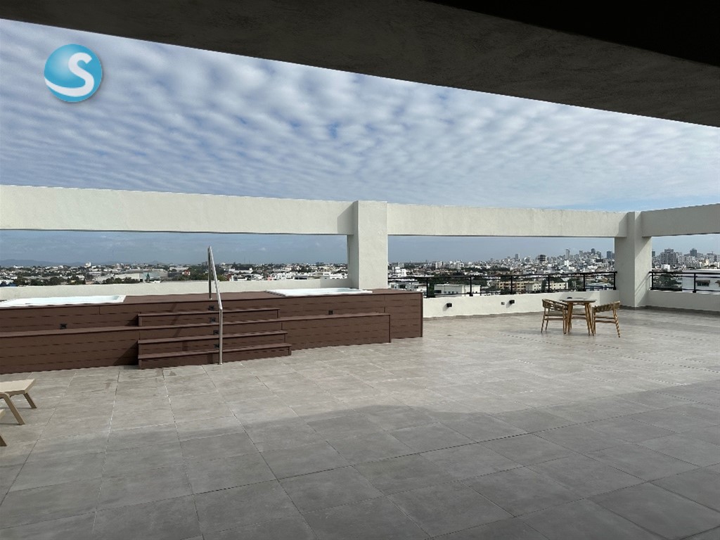 Apartamento a estrenar Con excelente vista 2 habs. 2.5 baños Sala comedor Balcón Cuarto de Servicio con baño Un parqueo techado El edificio cuenta con: Terraza destechada con Jacuzzi Terraza techada Área de trabajo Área de reuniones Gimnasio Área de juegos para niños Planta full Gas común Dos ascensores Para cualquier información adicional: Kenia Sánchez Cel. 809844-2164