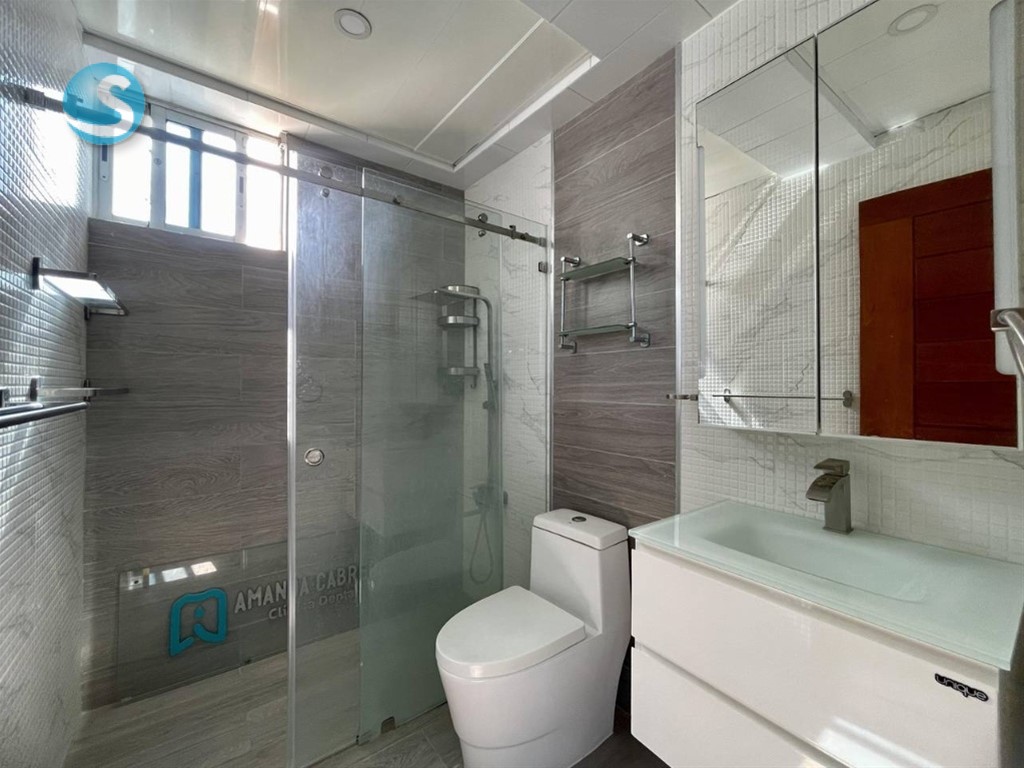 Apartamento en exclusiva calle de Renacimiento Piso 6 167 mts2 3 habitaciones 3.5 Baños Sala Comedor Cocina Área de Lavado Cuarto de Servicio Balcón 2 parqueos (con disponibilidad de comprar otro adicional) CARACTERÍSTICAS DEL RESIDENCIAL: Ascensor Lobby Planta full Gas común Seguridad 24/7 Portón Eléctrico Precio de venta US$285,000 EMM. B.