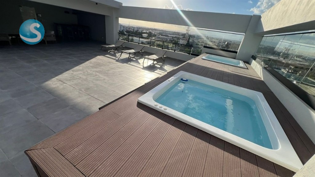 ? ¡ALQUILER DISPONIBLE – US$800! ? Vive con estilo en este moderno apartamento de 60 m² aprox. + amplio balcón ??? ?? 1 habitación con walk-in clóset y baño privado ?? ½ baño de visitas ?? Cocina con estufa empotrada, tope en granito y hermoso desayunador ?? Área de lavado ?? 1 parqueo techado ?? Amenidades tipo club: ? Lobby amueblado ? Rooftop techado y destechado con 2 jacuzzis + BBQ ? Gimnasio ? Área infantil ? Salón lounge ? Working space ? Ascensor moderno ? Planta full ? Seguridad 24/7, cámaras y control de acceso ? Gas común y pozo tubular ? Terminaciones modernas en porcelanato, madera preciosa y grifería importada. ?? Alquiler: US$800 mensuales Ideal para ejecutivo(a), pareja o inversión para renta corporativa.