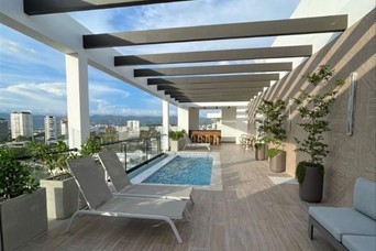 Apartamento de Lujo en Piso 7 con Vista Panorámica al Monumento – Santiago Precio de Venta: US$260,000 Ubicación: Torre de lujo con amenidades exclusivas, Santiago de los Caballeros Metraje: 110 m² Ubicado en el piso 7 de una torre residencial de alto estándar, este apartamento ofrece una vista espectacular al Monumento y a toda la ciudad de Santiago, combinando elegancia, confort y una ubicación privilegiada. Distribución: • 2 habitaciones, cada una con walk-in closet y baño privado • Sala principal con diseño moderno y acabados de alta calidad • Comedor independiente • Cocina moderna equipada • Balcón privado con vista a la ciudad y al Monumento • Área de lavado Amenidades del Rooftop: • Piscina con vista panorámica • Gimnasio completamente equipado y sauna • Área infantil • Terraza al aire libre • Área social para eventos y reuniones Beneficios Adicionales: • Aire acondicionado en todo el apartamento • Línea blanca incluida • Lobby y seguridad 24 horas