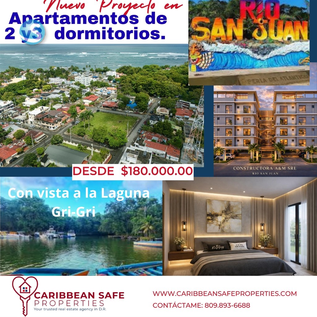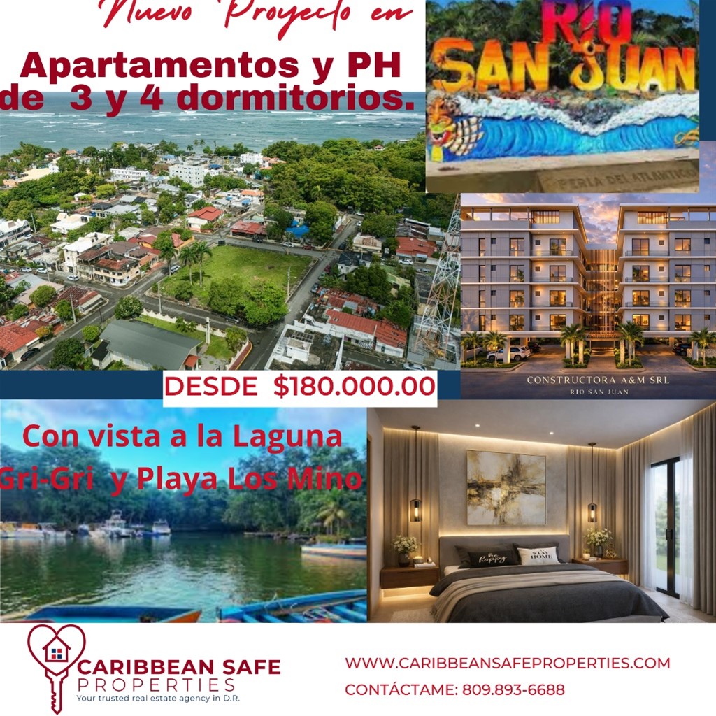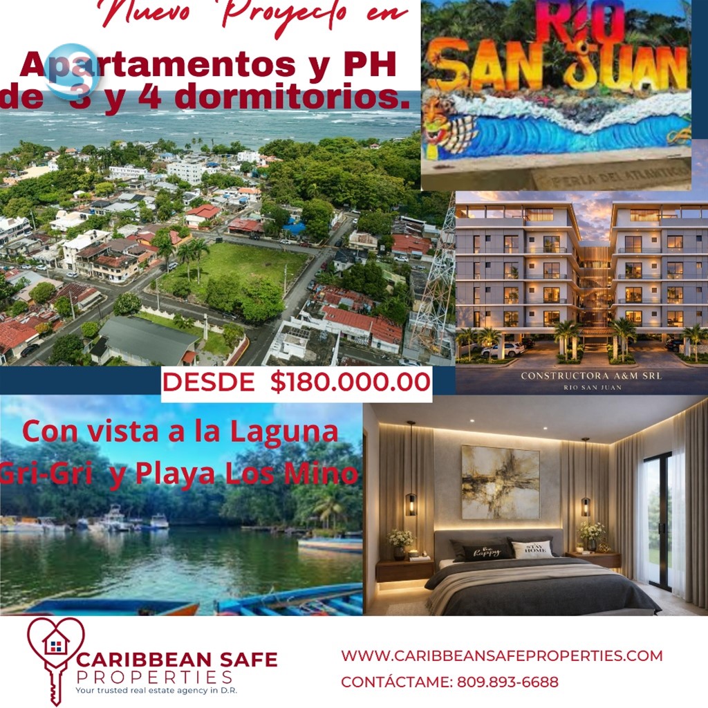 RESIDENCIAL ALOMER: Vive la armonía entre lujo, naturaleza y ubicación privilegiada en Río San Juan Descubre un proyecto único inspirado en la belleza natural de la Laguna Gri-Gri y el encanto auténtico de Río San Juan. ALOMER te conecta con todo: a pocos metros de la laguna, rodeado de servicios, comercios y experiencias que elevan tu calidad de vida. ? Un concepto diseñado para vivir y crecer ALOMER integra área comercial y oficina corporativa dentro del mismo edificio, brindándote comodidad, valorización y una comunidad dinámica en un solo lugar. ?? Opciones disponibles en preventa: • Apartamento – 135 m² 3 habitaciones | 2.5 baños | 1 parqueo Desde US$180,000 • Penthouse – 270 m² 4 habitaciones | 3 baños + 2 medios baños -Terraza privada con piscina jacuzzi Desde US$250,000 Invierte a tu ritmo Disfruta de un plan de pago diseñado para tu comodidad, con la flexibilidad de adaptar tus cuotas según tus posibilidades: -10% al separar tu apartamento -20% en 90 días para completar el inicial -30% durante la construcción sea cuota de menos de US$ 1,500.00 -40% contra entrega (2029) financiamiento disponible con el banco de tu preferencia Más que una propiedad, un estilo de vida Vivir en ALOMER es disfrutar de: - Ubicación céntrica estratégica -Acceso inmediato a servicios existentes -Entorno natural incomparable -Alta proyección de valorización Haz realidad tu inversión en el paraíso Aprovecha esta oportunidad de asegurar tu espacio en uno de los destinos más encantadores del país. -Contáctanos hoy y reserva tu unidad en ALOMER Tu nuevo estilo de vida en Río San Juan te espera.