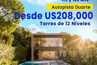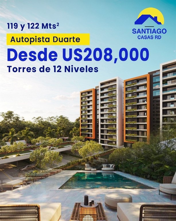 Treo II Residences – Desde 208,000 USD Proyecto moderno con más de 2,500 m² de áreas verdes y sociales, excelente ubicación y amenidades de primera. Tipologías disponibles: - Tipo A – 119 m² - Tipo B – 122 m² Todos los apartamentos incluyen: - 3 habitaciones - Sala - Comedor - Cocina - Área de lavado - Balcón Facilidades de pago: - 5,000 USD de separación - 24 meses para completar el 30% - Descuento especial pagando el 30% de inicial Amenidades del proyecto: - 2 parqueos por apartamento - Parqueos para visitantes - Cámaras de seguridad - Control de acceso - Lobby - Seguridad 24/7 - Amplias áreas verdes - Planta eléctrica full - Área de juegos para niños - Gimnasio - Piscina - 2 parques recreativos Más información y disponibilidad: 829-470-1184 Jean Carlos Rodriguez