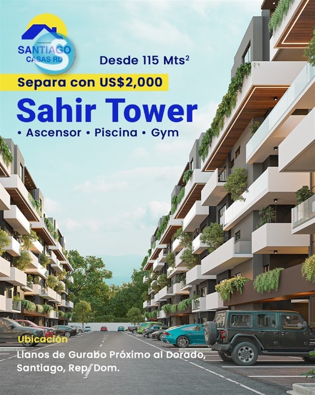 DESCRIPCIÓN ?? SAHIR TOWER Nuevo proyecto residencial ubicado en Llanos de Gurabo, con fácil acceso a supermercados y colegios. Edificio moderno de 6 niveles, con 2 apartamentos por nivel, diseñado para brindar comodidad, seguridad y exclusividad. ?? 115 Mts² Características: ? Ascensor ?? Cámaras de seguridad ?? Área social ??? 3 habitaciones ?? 2 ½ baños ??? Lobby ?? Gas común ??? Gimnasio ?? Precios desde US$175,275 en adelante FORMA DE PAGO: ?? Separación: US$2,000 ?? Durante la construcción: 30% ?? Contra entrega: 70% Entrega en dos etapas: ?? 1era etapa: Agosto 2027 ?? 2da etapa: Octubre 2027 Mas información 829-420-5087 Fradery Ruiz asesora inmobiliaria de Santiago Casas ?? rd