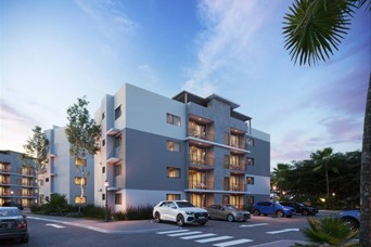 Apartamentos de 2 y 3 habitaciones en residencial cerrado con amenidades tipo club, en Santo Domingo Norte. Una propuesta ideal para vivir con tranquilidad o invertir con visión en una zona de crecimiento acelerado, próxima a la Av. Jacobo Majluta. Aquí encuentras edificios de 4 niveles con una distribución pensada para el día a día: unidades con 1 parqueo, opciones con patio en primeros niveles y terrazas privadas en 4tos pisos (con cerámica y pergolado incluidos en los 4tos niveles). El residencial eleva tu calidad de vida con áreas recreativas completas: piscina semiolímpica, casa club, gimnasio al aire libre, pista de caminata, área pet friendly, canchas multiusos, salón multiusos, juegos infantiles y área de zumba/yoga. Además, cuenta con garita y control de acceso, en un entorno completamente cerrado para mayor seguridad. Terminaciones funcionales y modernas: pisos en cerámica, ventanas corredizas en aluminio y vidrio, balcón con barandilla metálica, cocina en melamina con tope de granito, puertas tipo Everdoor y closets en melamina simulación madera. Mantenimiento aproximado: RD$2,500. Ubicación estratégica: conexión desde la Penetración Norte, cerca de la circunvalación y con acceso ágil a puntos clave. A pocos minutos de supermercados y servicios, y con cercanía al Aeropuerto El Higüero / La Isabela y estación del metro. Precios y tipologías (desde): 2 habitaciones | 55 m² desde US$57,700 (4to nivel con terraza privada 32 m²). 3 habitaciones | 65 m² desde US$69,300 (opciones con terraza en 1er nivel y terraza privada en 4to nivel). 3 habitaciones | 75 m² desde US$78,300 (terraza 1er nivel / terraza privada 4to nivel). 3 habitaciones | 90 m² desde US$92,400 (incluye cuarto de servicio; terraza 1er nivel / terraza privada 4to nivel). Beneficios para el comprador: posibilidad de Bono Vivienda, exoneración del 3% de transferencia en caso de aplicar al bono, y compra respaldada por fideicomiso, lo que aporta seguridad y confianza en el proceso. Entregas por etapas: desde diciembre 2025 y fases posteriores hasta diciembre 2027. ================================================= 2- and 3-bedroom apartments in a gated community with club-style amenities in Santo Domingo Norte. A smart option to live comfortably or invest in a high-growth area near Av. Jacobo Majluta. The community features 4-story buildings, 1 parking space per unit, and layouts designed for everyday living—ground-floor units with patios and top-floor units with private terraces (with ceramic flooring and pergola included on 4th-floor terraces). Enjoy a lifestyle upgrade with full recreational spaces: a semi-Olympic swimming pool, clubhouse, outdoor gym, walking track, pet-friendly area, multi-purpose courts, multi-use event room, kids’ playground, and zumba/yoga area. The development is fully gated with a guardhouse and controlled access for added peace of mind. Modern, practical finishes: ceramic floors, sliding aluminum-and-glass win