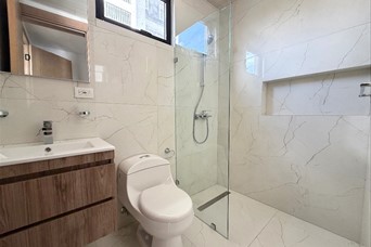SERRALLES Apartamento Nuevo en Moderna Torre con ubicación estratégica. ALQUILER CON LINEA BLANCA US$1,200 65 metros 1 habitación 1.5 baños Balcón Cocina con desayunador Área de lavado 1 parqueo Amenidades: Piscina Gimnasio Terraza Área infantil Lobby Amueblado Ascensores Planta Eléctrica Full