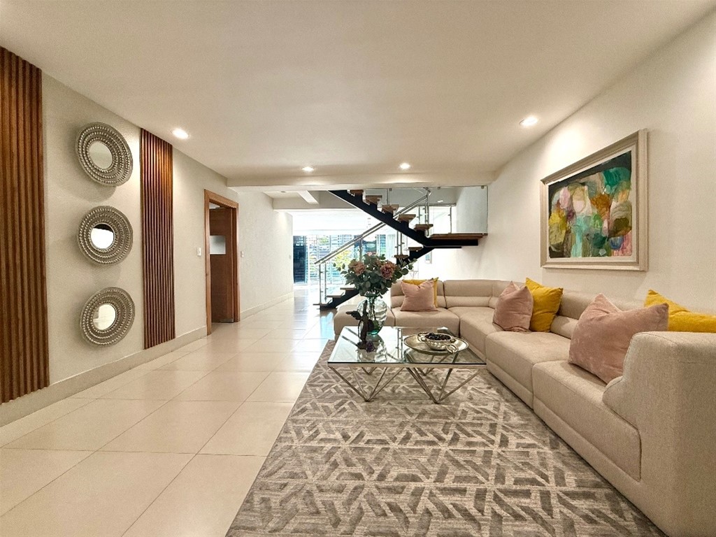 AMPLIO APARTAMENTO DE 2 NIVELES CON TERRAZA EN SERRALLES 310 MTS | 3 HAB | 3.5 BAÑOS | ESTUDIO | 2 PARQUEOS Primer Nivel Terraza Estudio Sala Comedor Cocina con desayunador Cuarto de servicio Área de lavado Baño de visita Segundo Nivel Habitación principal con su baño y doble walk in closet 2 habitaciones con sus baños y W/C Cuarto de ropa blanca Amenidades Lobby Salón de Eventos Área de BBQ Dos (2) Ascensores Año de construcción 2015 PRECIO US$685,000