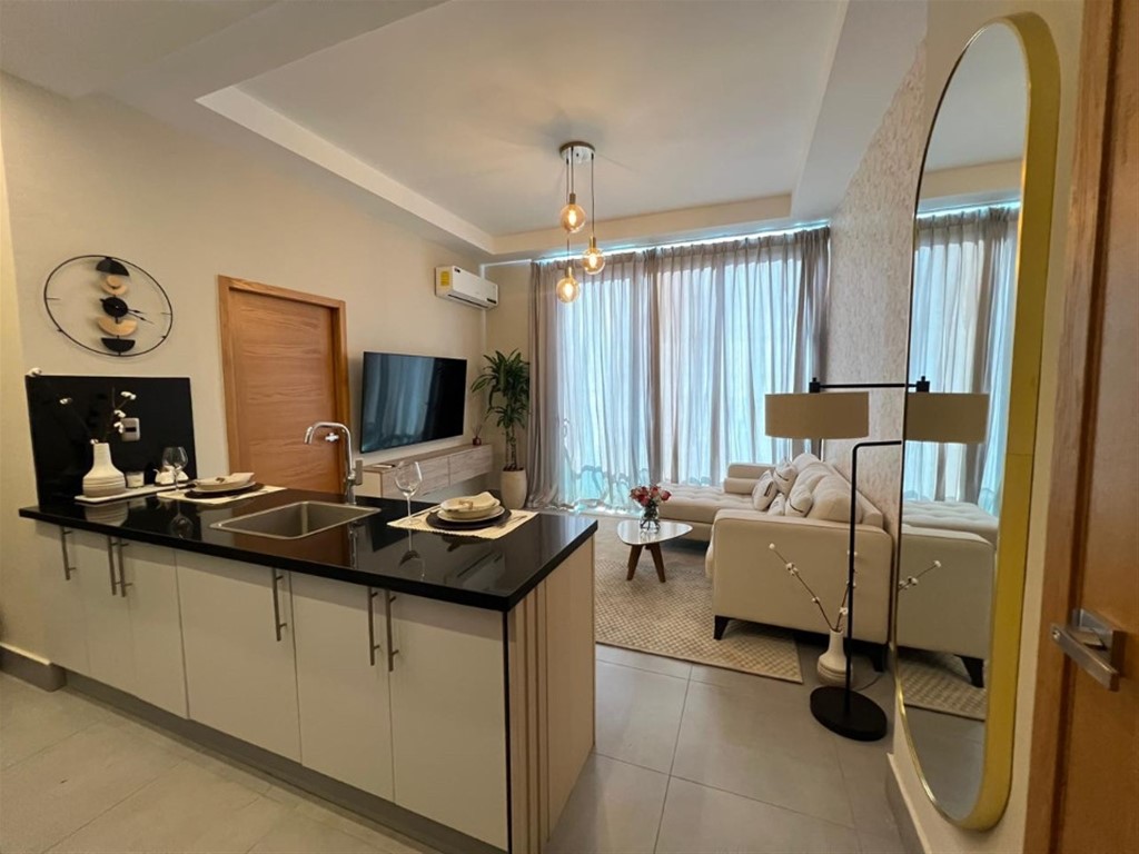SOLO CLIENTE INTERESADO Apartamento ubicado en el centro de la ciudad en el prestigioso sector del Ensanche Serrallés, el mismo cuenta con: Piso 10 1 hab. Cocina Desayunador Sala Balcón 2 baños 1 parqueo Piscina Gym Mantenimiento incluido con internet de banda ancha y gas común. 50 metros cuadrados Cerca de supermercados, farmacias, tiendas, restaurantes, clinicas y demás. SOLO CLIENTE INTERESADO.