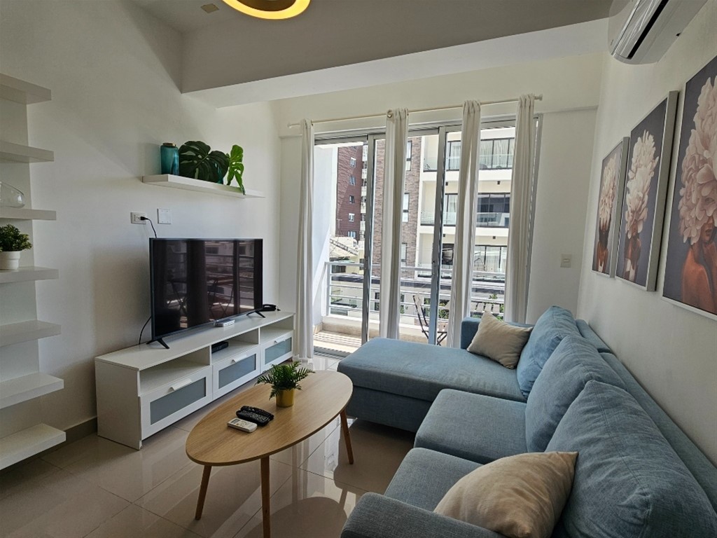 Alquilo amplio y comodo apartamento en torre residencial ( no airbnb) 69 mts 1 habitación con baño y walking closet pequeño balcon sala comedor cocina medio baño area de lavado baño de servicio 1 parqueo lobby gym salon multiuso con jacuzzi