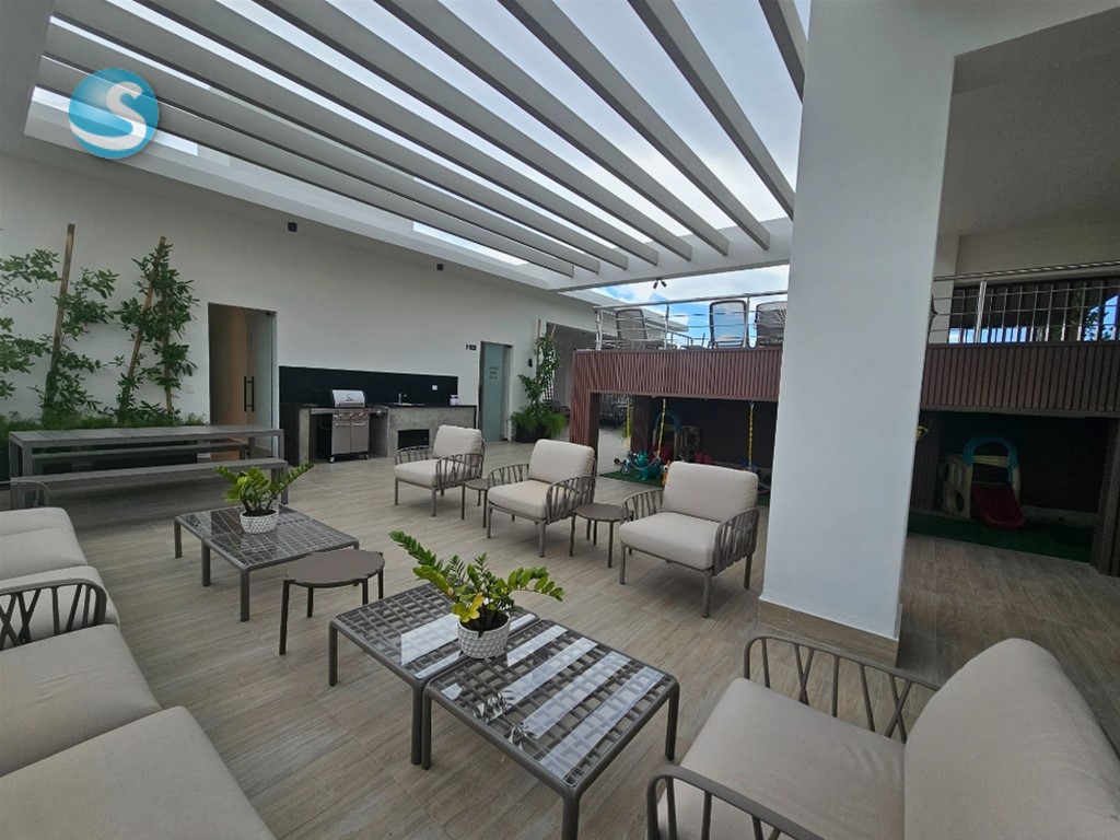 Alquilo a estrenar en torre familar en lo mejor de serralles!!! 65 mts con excelente distribución balcon sala comedor cocina con desayunador 1 habitación con su closet y baño 1 parqueo posee aires en habitación y sala estufa, horno y extractor lobby climatizado piscina gym salon multiuso terraza con bbq area de niños