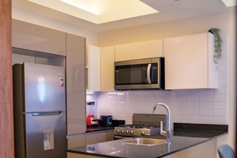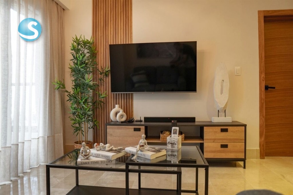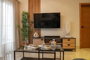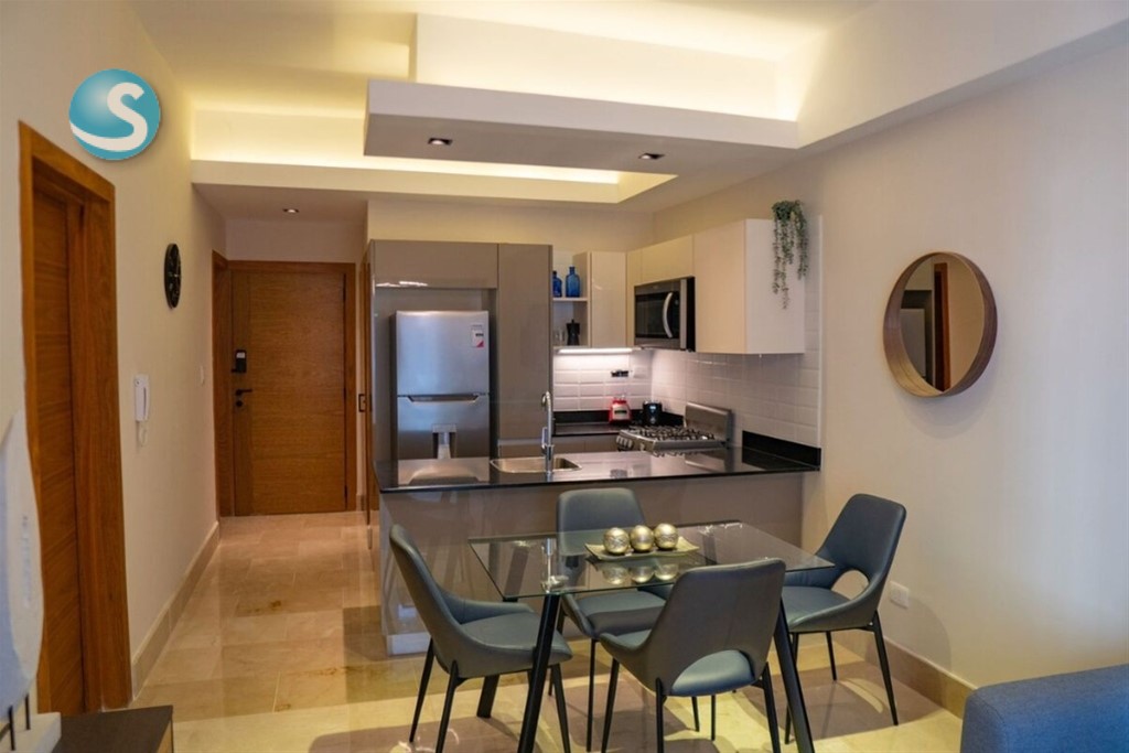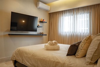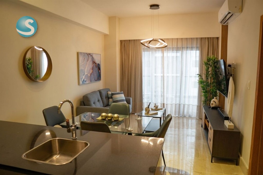 60 M2 netos. 72 M2 totales. Un (1) parqueo. Una (1) habitación con amplio walk-in closet. 1.5 baños. Balcón. Sala. Comedor. Cocina. Área de lavado. Ascensores. Área común; Lobby climatizado y amueblado. Gimnasio. Terraza. Piscina en último nivel. Salón multiuso. *Precio incluye mantenimiento, línea blanca, mobiliarios y equipos. *PRECIO DE ALQUILER: US$1,500.00