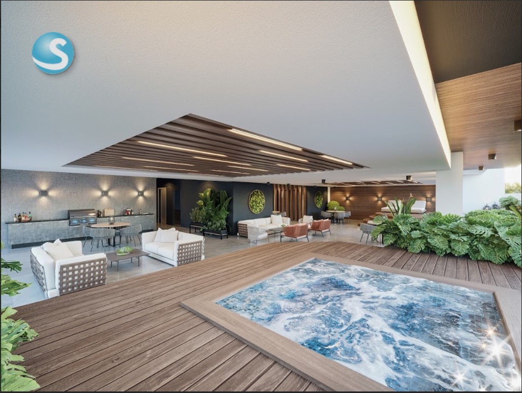 Apartamento en venta en el sector Serralles 1 habitación con Walk in Closet 1.5 baño 1 parqueo techado Sala-comedor Cocina-desayunador Entrada Área de lavado Lobby climatizado y amueblado Gimnasio Lounge BBQ Piscina Bar y lounge exterior