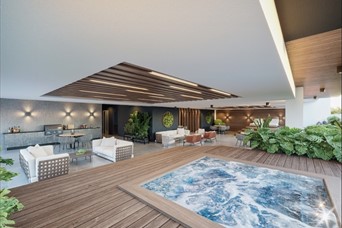 Apartamento en venta en el sector Serralles 1 habitación con Walk in Closet 1.5 baño 1 parqueo techado Sala-comedor Cocina Balcón Entrada Área de lavado Lobby climatizado y amueblado Gimnasio Lounge BBQ Piscina Bar y lounge exterior