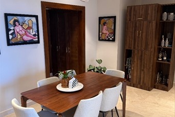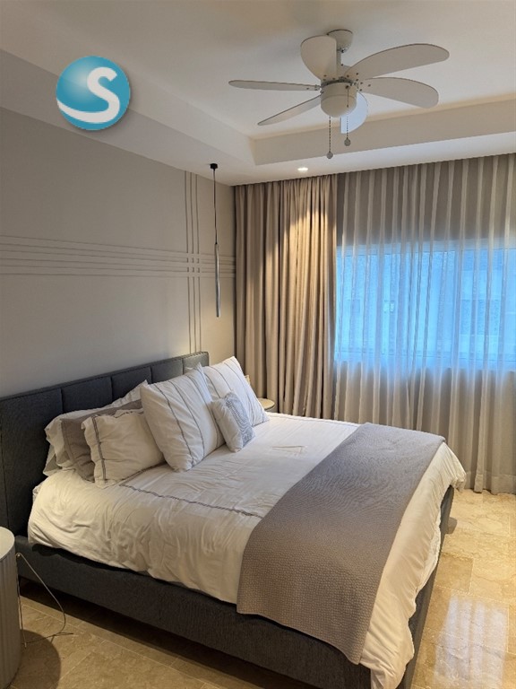 Apartamento Residencial en Serrallés. Multtiples entradas al residencial por varias avenidas. Áreas comunes: 2 gimnasios, 2 salones de eventos, gazebo, área de juegos infantiles, salones de choferes. Lobby y seguridad premium. A pasos de Agora mall, cercano al parque de la Vida, a una esquina de la Avenida Abraham Lincoln. Torre de 14 pisos de 2 apartamentos por piso. Piso 4 2 habitaciones + estudio 2.5 baños Area de lavado con cuarto de servicio Shutters Cerradura inteligente. Techos en sheetrock con iluminación 2 parqueos soterrados con opción a compra de más Balcón Pisos de mármol