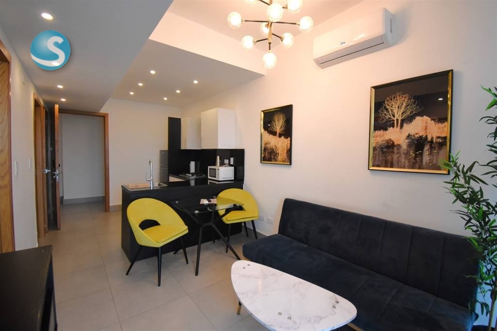 Apartamento de 1 habitación de 56.66M2 con su baño y closet? Piso 8 Cocina? Sala/comedor? Baño de visita? Parqueo? Balconete? Amplio lobby? Salón de conferencias (capacidad maxima 10 personas, sujeto a reservas) Cafeteria en el piso 11? Gimnasio? Terraza ? Piscina? Salón de belleza en el primer piso? 3 pisos de parqueos subterráneos? ? Edificio exclusivo ubicado en el suroeste de Santo Domingo, República Dominicana. Cuenta con 72 apartamentos y 16 niveles, ubicados en el prestigioso sector de Serrallés, que es uno de los distritos más famosos y modernos de la ciudad, dicha torre será administrada como un hotel premium. Descripción de la propiedad en inglés: 1 bedroom apartment of 56.66M2 with bathroom and closet 8th floor Kitchen Living/dining room Guest bathroom Parking Balcony Spacious lobby Conference room (maximum capacity 10 people, subject to reservations) Cafeteria on the 11th floor Gym Terrace Swimming pool Beauty salon on the second floor 3 floors of subway parking Exclusive building located in the southwest of Santo Domingo, Dominican Republic. It has 72 apartments and 16 levels, located in the prestigious sector of Serrallés, which is one of the most famous and modern districts of the city, this tower will be managed as a premium hotel.