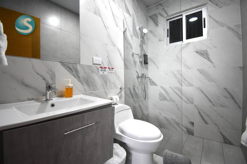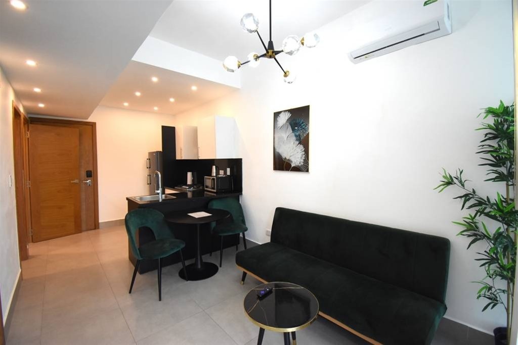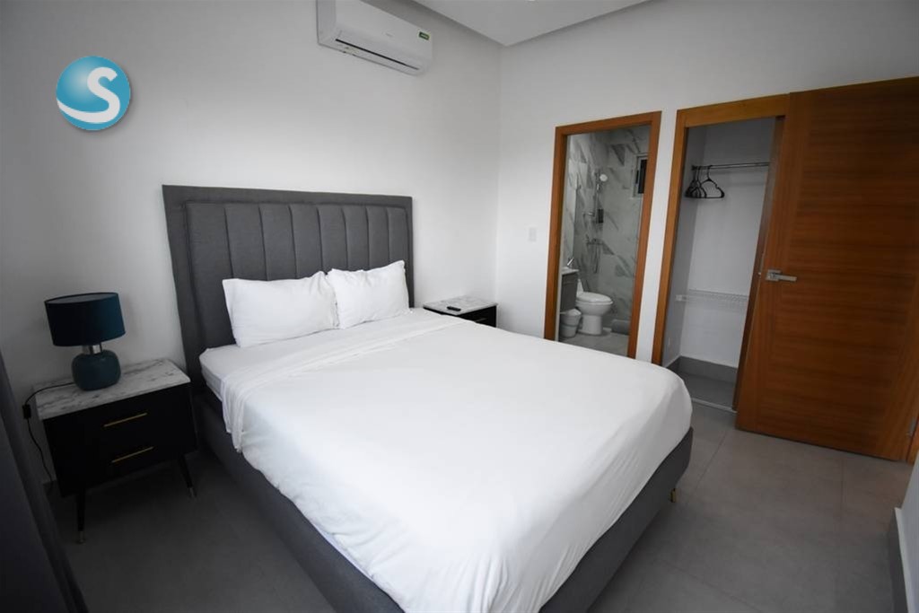 Apartamento 58.12M2 Piso 9 1 habitación con su baño y closet Cocina Sala/comedor Baño de visita Parqueo Balconete Amplio lobby Salón de conferencias (capacidad maxima 10 personas, sujeto a reservas) Cafeteria en el piso 11 Gimnasio Terraza Piscina Salón de belleza en el primer piso 3 pisos de parqueos subterráneos Edificio exclusivo ubicado en el suroeste de Santo Domingo, República Dominicana. Cuenta con 72 apartamentos y 16 niveles, ubicados en el prestigioso sector de Serrallés, que es uno de los distritos más famosos y modernos de la ciudad, dicha torre erá administrada como un hotel premium. ------------------------------------------ Apartment 58.12M2 9th floor 1 bedroom with bathroom and closet Kitchen Living/dining room Guest bathroom Parking Balcony Spacious lobby Conference room (maximum capacity 10 people, subject to reservations) Cafeteria on the 11th floor Gym Terrace Swimming pool Beauty salon on the second floor 3 floors of subway parking Exclusive building located in the southwest of Santo Domingo, Dominican Republic. It has 72 apartments and 16 levels, located in the prestigious sector of Serrallés, which is one of the most famous and modern districts of the city, this tower will be managed as a premium hotel.