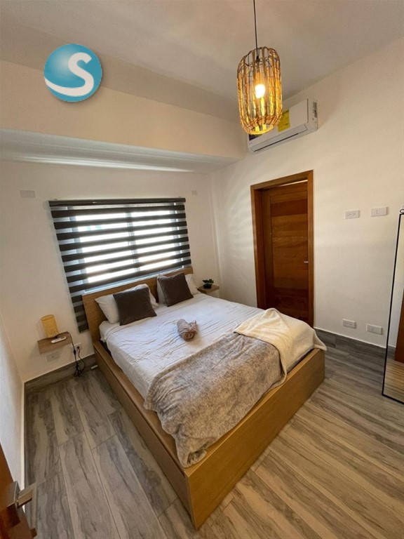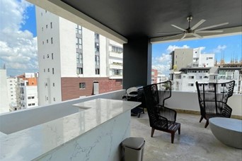Hermoso apartamento en el exclusivo sector de Serralles, con dos habitaciones, 2.5 banos, habitación de servicio, 1 parqueo, sala comedor, cocina. Torre con áreas sociales. Mantenimiento incluido. Precio de alquiler amueblado US$1,450