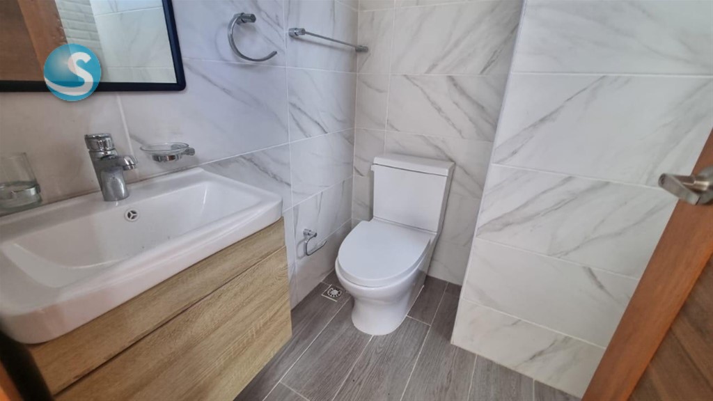 Apto. Nuevo a estrenar en Serralles Sala comedor Cocina 2 habs. Con Wilking closets 2 Baños Medio baño de visita Balcón Cuarto de servicio con baño Área de Lavado Dos parqueos techados Dos ascensores Gas común Área Social con: Gimnasio Jacuzi Salón de Actividades Precio de alquiler: Vacío: US1,500 Con línea blanca: US1,700