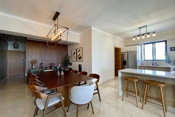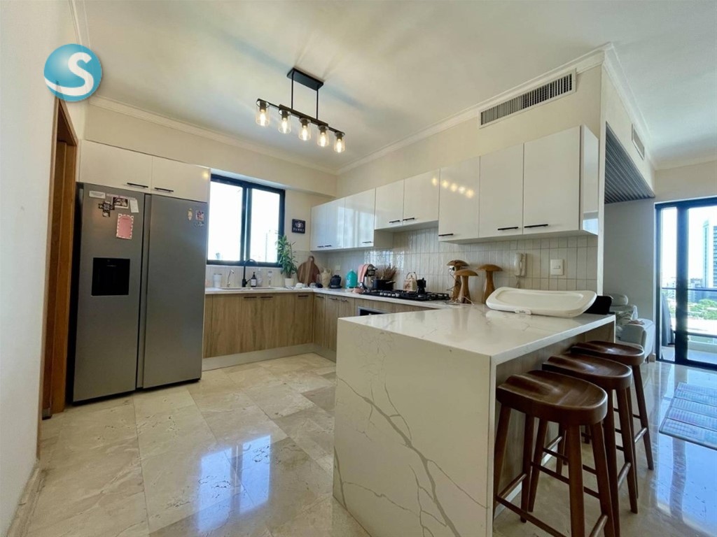 Apartamento en venta en exclusiva zona de Serralles Piso 8 173 metros 3 habitaciones 3.5 baños Sala Balcón Comedor Estar Familiar Cocina fría y Caliente Área de lavado 2 parqueos Características del residencial Piscina Lobby amueblado y climatizado Área de niños Salón multiuso Área de BBQ Precio de venta USD$380,000 Mantenimiento RD$16,100 gas incluido YICAURIS REYES 829-861-3763