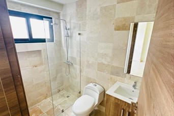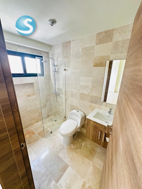 Vento apartamento nuevo 6to. piso, ubicado en zona privilegiada del sector Serralles, cerca de Restaurantes, plazas comerciales, colegios, entidades bancarias etc. 74.4 mts2. de construcción. Características: Piso 6. 1 habitación con baño y W/C Espacio para una segunda Hab/Cuarto estudio. Baño completo Sala Comedor Cocina Área de servicio con baño 1 parqueo techado Balcón Amenidades de la torre: Lobby principal con acceso directo Planta 2 ascensores 2 escaleras Bike rack Conserjería Estación de choferes Área de yoga Gimnasio Jacuzzi Terrazas techadas BBQS Área de recreación infantil Biblioteca Salón multiuso Área infantil Área social Generador eléctrico Gimnasio Jacuzzi Salón de Yoga Precio: USD 189,000.00