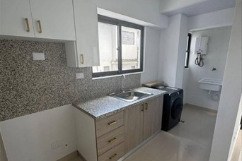 Apartamento en alquiler en Serralles. Piso 1 53 m2 + 8 de terraza 1 habitación 1 baño Walk in closet Balcón tipo terraza Sala Comedor Cocina Shutters Lavadora/Secadora 2 aires acondicionados 1 parqueo La torre ofrece: Lobby climatizado Picuzzi Gimnasio Salón de usos múltiples Terraza destechada Cisterna Planta full Precio: US$900 Mantenimiento incluido Informacion Aracelis Alvarado 809-763-2932