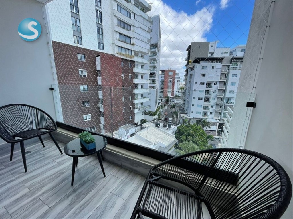Moderno apartamento en alquiler totalmente amueblado en Serralles Piso 7 94 MTS 2 habitaciones 2.5 baños Sala Comedor Cocina Balcón Área de lavado Habitación de servicio 2 parqueos paralelos y techados Terminaciones Madera preciosa Jambas Tope de cocina en mármol Malla de seguridad Intercom Amenidades y características de la torre Portón eléctrico 2 ascensores Luz 24 hrs Cámaras de seguridad Planta full Área de juegos Gimnasio Piscina Salón Multiuso Lobby climatizado Terraza común Gas común Pozo Cisterna Precio de alquiler US$1550 ELIA. G. 8293990815 laury ventura