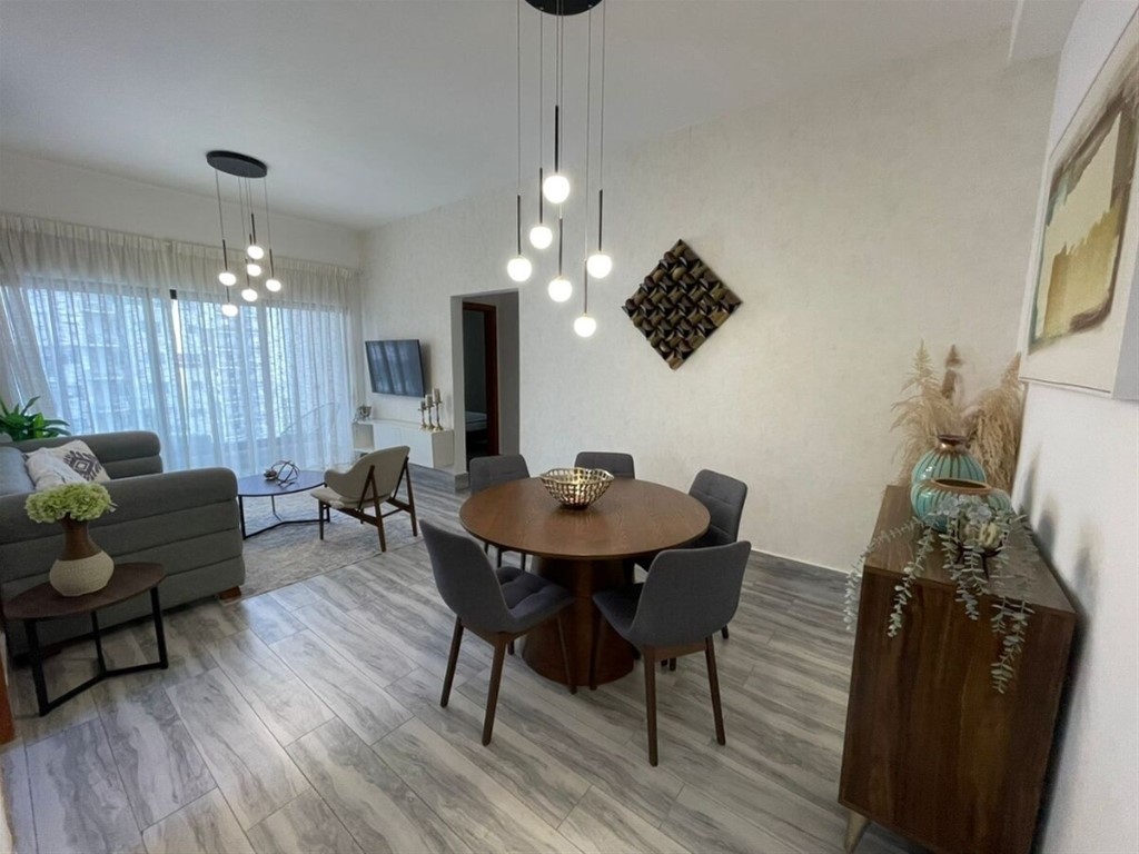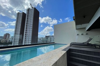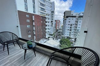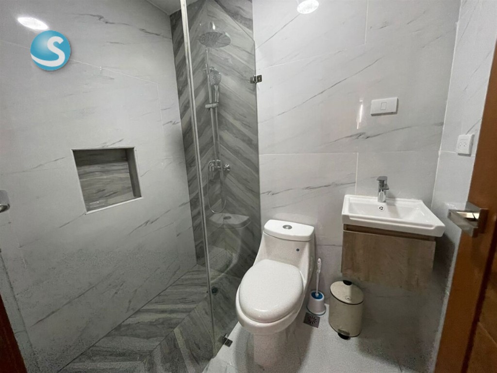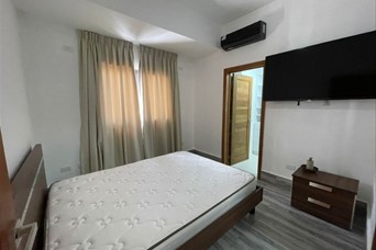 Moderno apartamento en alquiler totalmente amueblado en Serralles Piso 7 94 MTS 2 habitaciones 2.5 baños Sala Comedor Cocina Balcón Área de lavado Habitación de servicio 2 parqueos paralelos y techados Terminaciones Madera preciosa Jambas Tope de cocina en mármol Malla de seguridad Intercom Amenidades y características de la torre Portón eléctrico 2 ascensores Luz 24 hrs Cámaras de seguridad Planta full Área de juegos Gimnasio Piscina Salón Multiuso Lobby climatizado Terraza común Gas común Pozo Cisterna Precio de alquiler US$1550 ELIA. G.