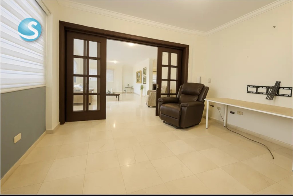 Apartamento en Venta en Serrallés, Santo Domingo – 256 m² de Lujo y Confort Si buscas un apartamento en venta en Santo Domingo con amplitud, exclusividad y ubicación privilegiada, esta propiedad en Serrallés, a pocos pasos del Parque de Serrallés, es ideal para ti. El apartamento cuenta con doble acceso ( por cocina y por hall principal) Características del Apartamento: ?? 256 m² de diseño clásico y espacios bien distribuidos. ??? 3 habitaciones, 2 con walk-in closet para mayor comodidad. ?? 3.5 baños con acabados de primera. ?? Estudio ideal para home office o área de entretenimiento. ??? Cuarto de servicio con baño. ?? 2 parqueos techados. Características de la Torre: ?? Solo 14 vecinos, con 2 apartamentos por piso. ?? Lobby elegante y ambiente 100% familiar. ?? 1 ascensor para tu comodidad. ?? Seguridad 24/7 para tu tranquilidad. ? Planta full para energía ininterrumpida. ¿Por qué comprar en Serrallés? ? Ubicación estratégica: Cerca de supermercados, colegios, centros comerciales y restaurantes. ? Zona tranquila y segura: Ideal para familias y personas que buscan exclusividad. ? Áreas verdes: Acceso al Parque de Serrallés para esparcimiento y actividades al aire libre. ? Alta valorización: Invertir en Serrallés garantiza plusvalía y rentabilidad. ¡No pierdas esta oportunidad! ?? Contáctanos para más información y agenda tu visita. ???