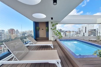Descubre este elegante apartamento estratégicamente ubicado en la centrica zona de Serrallés. Diseñado para quienes buscan confort y estilo, este espacio totalmente amueblado es perfecto para disfrutar de una vida cosmopolita. 1 Habitación 1 Baño Completo y 1 Medio Baño: Espacios Funcionales: Sala Comedor Cocina Amenidades de la Torre: Amplio Lobby Climatizado Dos Ascensores Área Social Completa: Gimnasio Salón de Reuniones Terraza con Dos Jacuzzis y BBQ: Baños Comunes Esta es una oportunidad única para vivir en un entorno de lujo y confort en una de las zonas más codiciadas de Santo Domingo. ¡Contáctanos hoy para más detalles y para agendar una visita!
