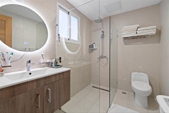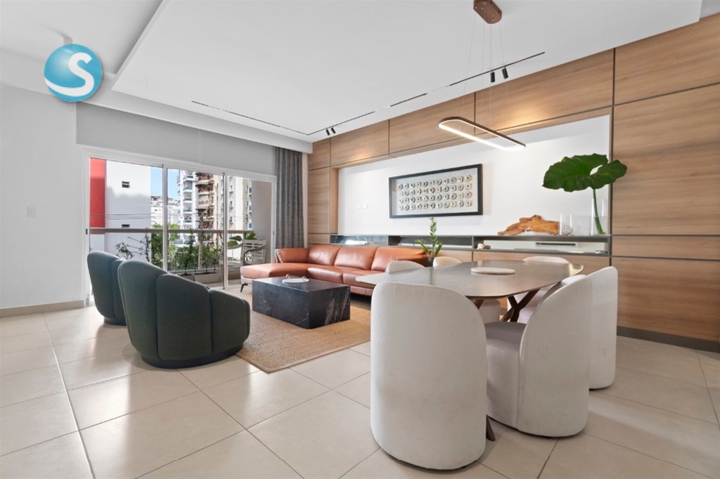 Hermoso apartamento con una ubicación céntrica en Serralles cerca de la parada de metro, Ágora Mall, Parque Serralles, Ikea, Super Mercados Nacional, Restaurantes. 3 parqueos 3 Habitaciones c/u con Baño Walking Closet por Habitat Design 1/2 baño Amplia Cocina importada de Italia por Habitat Design Amplia área de servicio Balcón Sistema de Filtración de agua en cisterna Locker 3 parqueos Amenidades: Piscina, Salón de Eventos con terraza, Gimnasio, Sports Bar, Salón para Niños, Roof-top con pista de caminar Terminaciones de primera Gas Común Caldera para Agua caliente Ducto de Basura Mantenimiento $18,000 Precio de venta US$ 390,000us