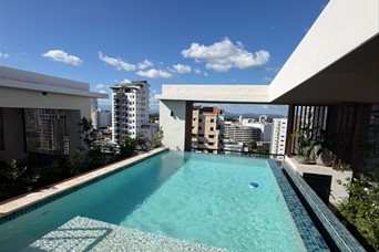 ALQUILO Piso 5 Amueblado Full En de Serrallés Prox a Agora Mall CÓDIGO: PD476 - 60 Mts neto + parqueo - Piso 5 - 1 Habitación con Walking Closet - 1.5 Baños - 1 Parqueo techado - Amplio balcón - Amueblado - Lobby climatizado Area social - Piscina - Gym - Salon multi-uso - BBQ - Ascensor - Area infantil - Seguridad 24/7 Precio de Alquiler: US$1,600.00 Mantenimiento Incluido