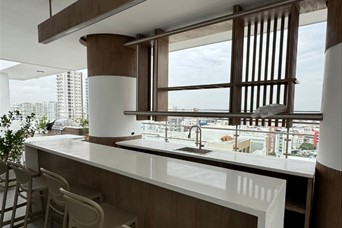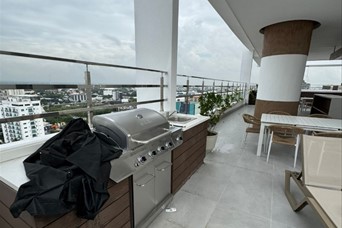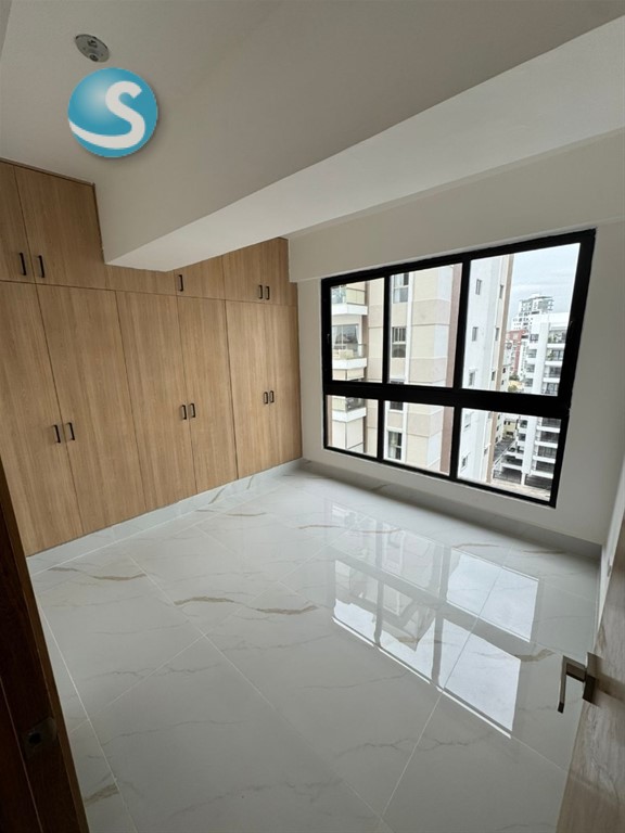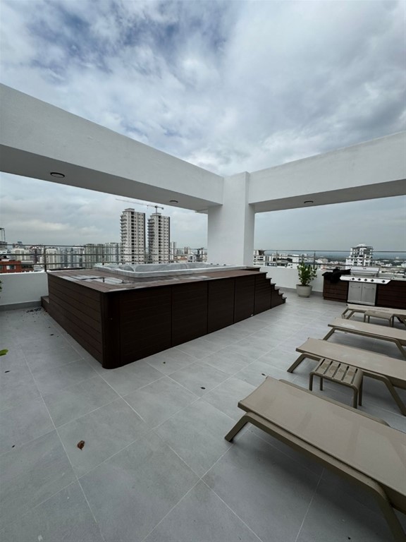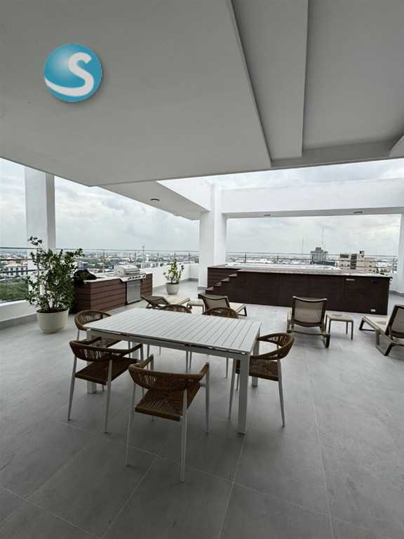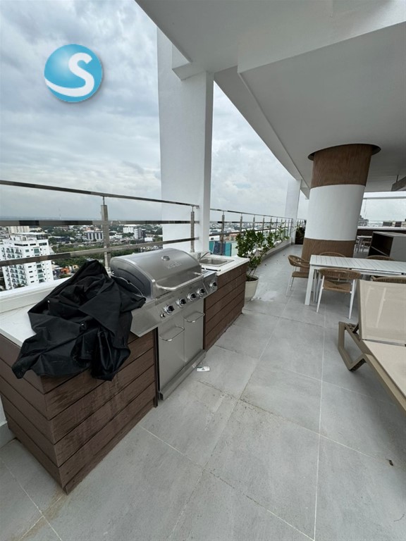 Apartamento en alquiler en el sector de Serralles apartamento con línea blanca Precio: US$1,500 Piso: 9 Metraje: 102 mtrs2 Año de construcción: 2026 2 habitaciónes cada una con su baño, la principal con W/c Sala/ comedor Baño de visita Balcón con vista panorámica Cocina Área de lavado Habitación de servicio con su baño 2 parqueo Área social Salón multiuso, baños, cine, sauna, cocina fría común, Área infantil, gym, 2 picuzzis lobby moderno, seguridad, cámaras, gas común, planta energética 24h7, consejería, 2 ascensores. Mantenimiento Incluido