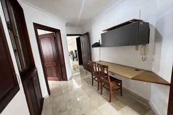 Apartamento Amueblado en Alquiler 3 Habitaciones en Serralles CÓDIGO: PD622 Referencia: Detrás de Claro de la Kennedy -3 Habitaciones (Principal con W/C) -3.5 Baños -210 Metros de Totales -187 Metros de Netos -2 Parqueos Techados Paralelos -Locker -Piso 5 -Sala -Comedor -Cocina -Family Room -Área de Lavado -Cuarto de Servicio -Balcón Frontal Amplio -Pisos en Mármol Características del Edificio: -Ascensor -Planta Full -Recibidor -Seguridad Precio de Renta: US$1,800.00 Mantenimiento Incluido