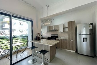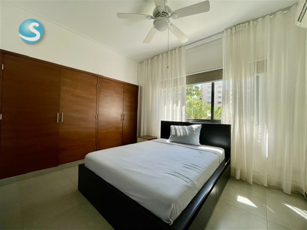 Apartamento en exclusiva torre de Serralles Próximo a Ágora Mall 2 habitaciones 2.5 baños Sala Balcón Cocina con desayunador Área de lavado Habitación de servicio 2 parqueos CARACTERÍSTICAS DE LA TORRE Lobby amueblado y climatizado 2 ascensor Gimnasio Terraza con BBQ Área de niños Jacuzzi Planta full Precio de venta US$330,000