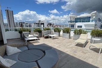 Serralles Amueblado 1 hab Balcón nivel 7 Sala Comedor Cocina 1.5 Baños 1 parqueo $1,000 Piscina Gym