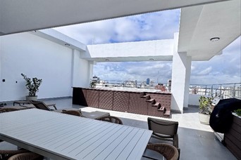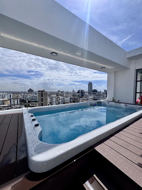 Elegancia, amplitud y ubicación en Serrallés Vive en un apartamento moderno dentro de una torre nueva a estrenar, con espacios amplios, excelente iluminación natural y una distribución pensada para el confort familiar. Disfruta de áreas sociales exclusivas y un ambiente tranquilo en una de las mejores zonas de la ciudad. Serrallés US$ 2,700 mensuales 173 m² netos + 26 m² de terraza 3 habitaciones con baño 3.5 baños 3 parqueos Doble sala y comedor Cocina fría y caliente Habitación de servicio Torre nueva a estrenar Lobby climatizado Áreas sociales: jacuzzi, gimnasio, spa, cine, BBQ, salón de eventos No mascotas Ideal para extranjeros