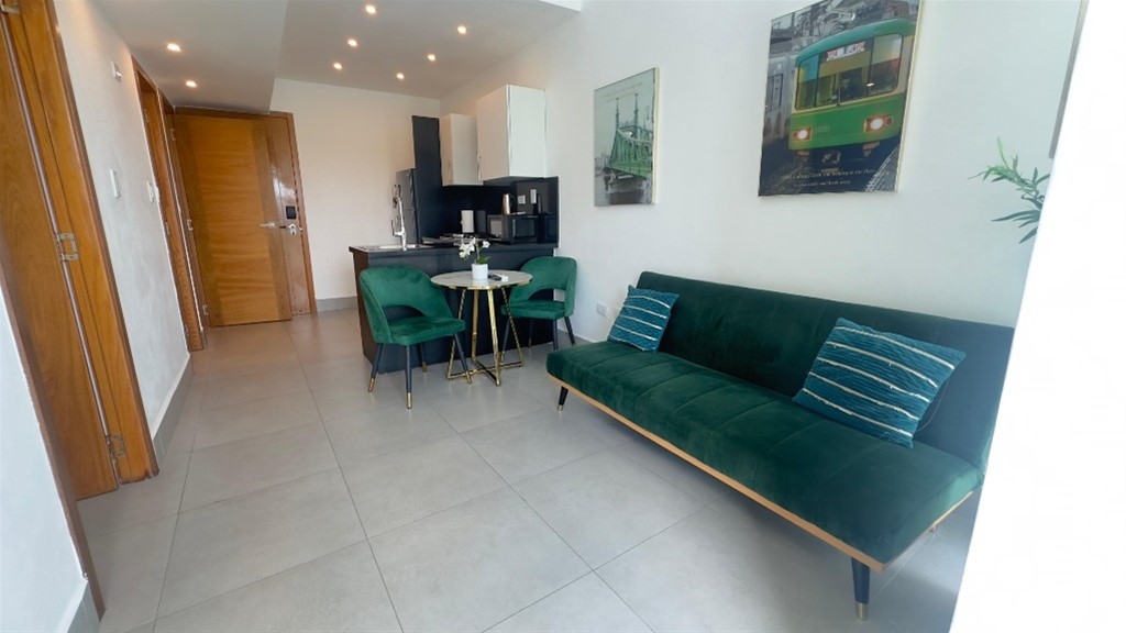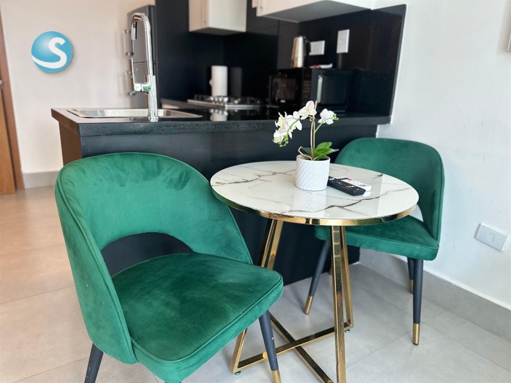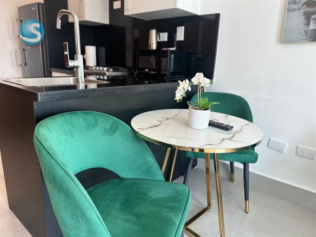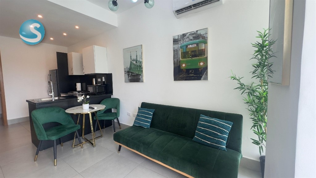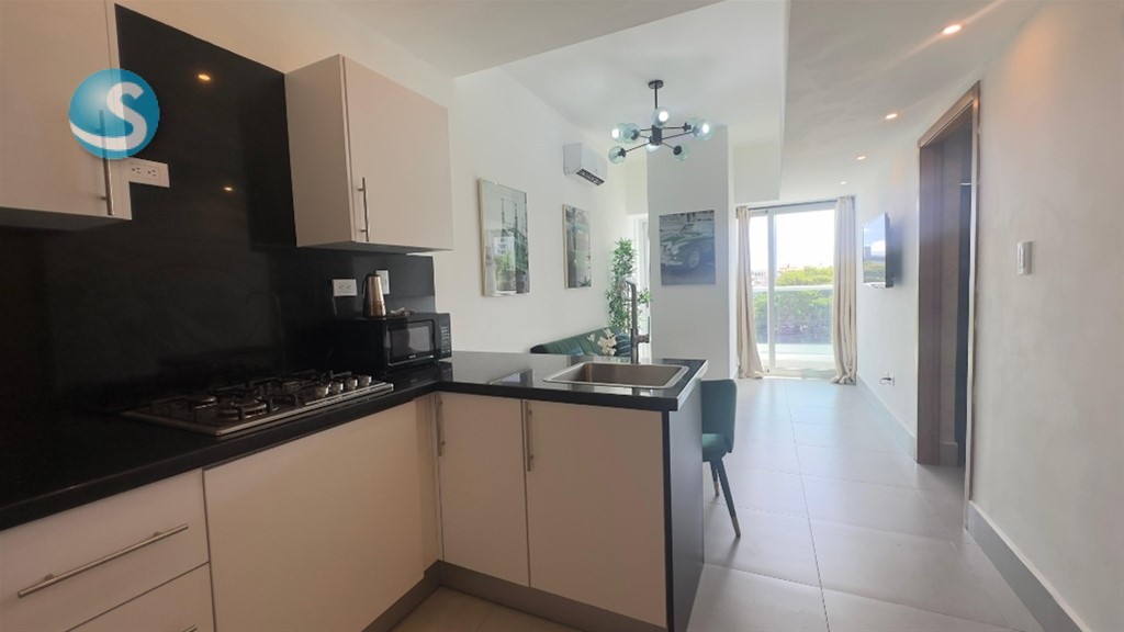 MLS #26-1321 opotunidad!! Apartamento de 1 habitación totalmente amueblado, ubicado en una de las zonas más céntricas y demandadas de la ciudad Ideal para vivir o invertir (perfecto para renta corta o larga) 42 m² bien distribuidos 1 habitación con baño y clóset 1.5 baños sala - comedor balcon vista despejada Cocina abierta Área de lavado 1 parqueo techado Torre moderna con: Lobby climatizado 2 ascensores Piscina Gimnasio Terraza con sundeck michell valles 829-865-3901