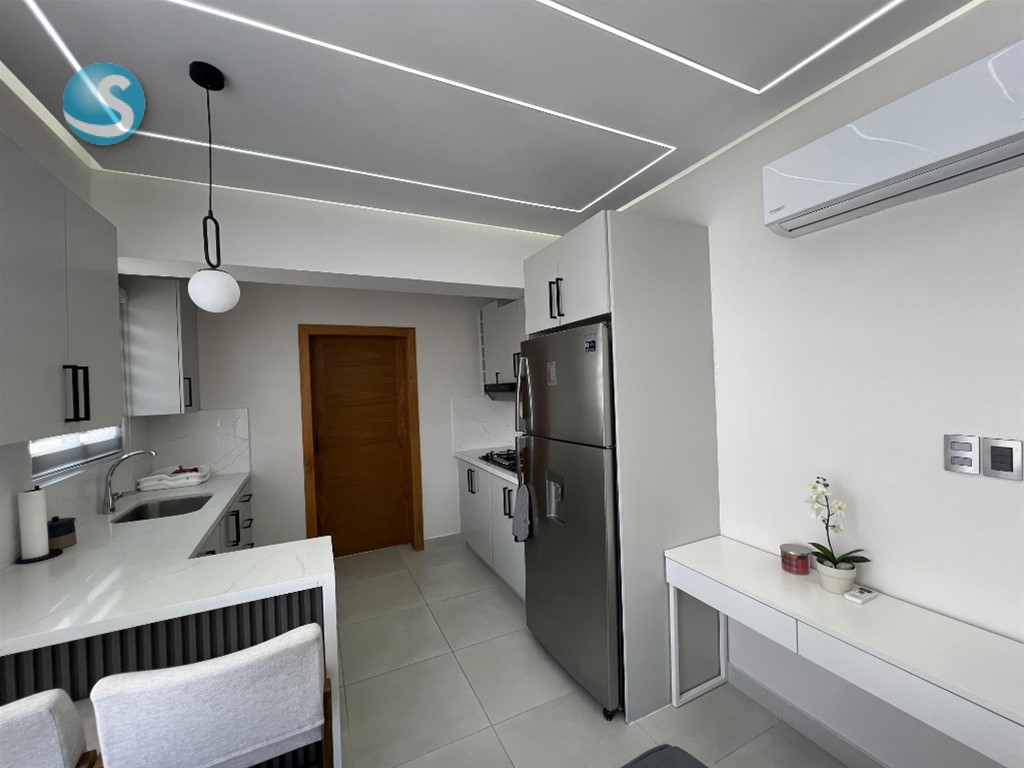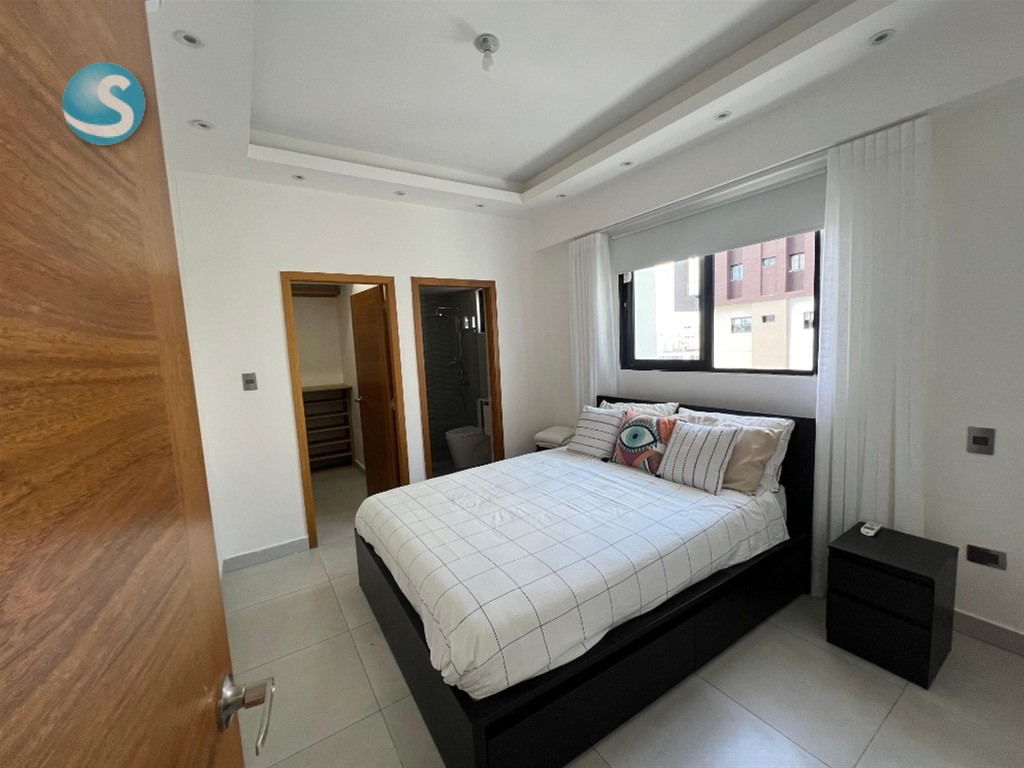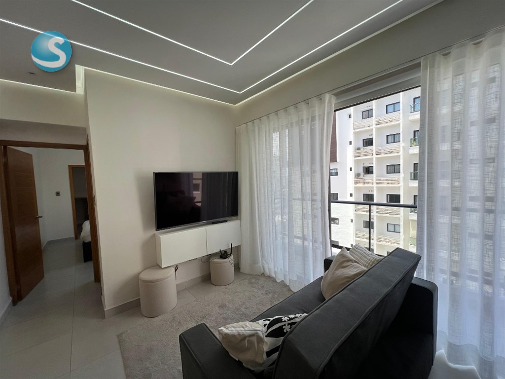 APARTAMENTO NUEVO AMUEBLADO EN ALQUILER Ubicado en Ensanche Serralles, Santo Domingo, con acceso desde la Avenida Padre Fantino Falco. Cuenta con las siguientes caracteristicas: Decimo nivel 60 m² de construcción 1 habitación Walk in closet 1 baño completo 1 medio baño Cocina Sala- Comedor Balcón Area de lavado 1 Parqueo La torre cuenta con Areas sociales Piscina Gimnasio Area de niños BBQ Bar PRECIO:US$950 MANTENIMIENTO INCLUIDO