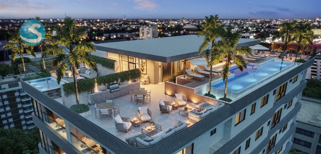 Vendo en Serralles apartamento en piso 4 , de dos habitaciones, 124 mt2 con cuarto de servicio full,dos parqueos,piscina ,gim, picuzzi, area de juegos, seguridad 24 /7, en cosnstruccion, terminacion junio 2027.