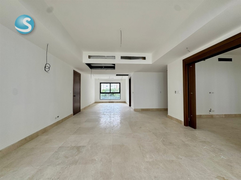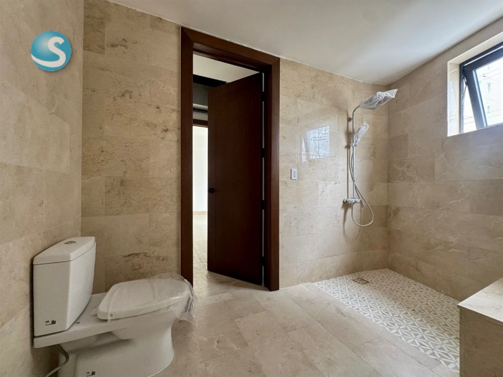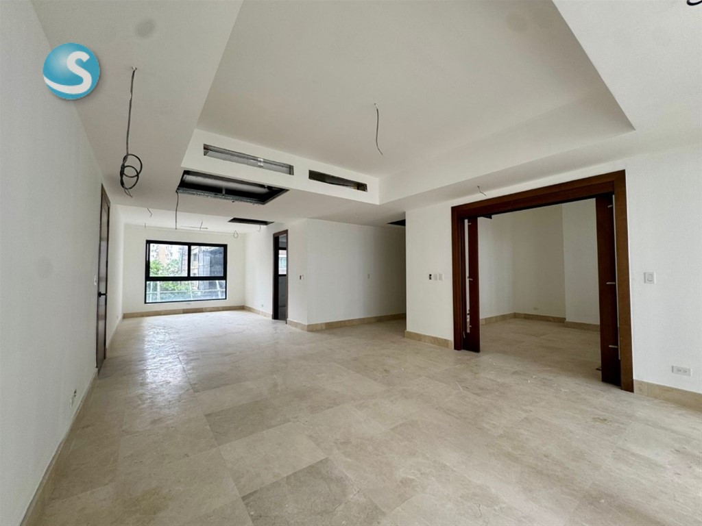 Solo 2 apartamentos por piso 3 parqueos Hall de entrada 3 habitaciones c/u con baño Baño visitas Sala Family Room Comedor Balcón tipo terraza Estudio Cocina fría Aires acondicionados Cocina caliente y lavado