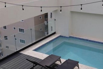 Hermoso apartamento en alquiler amueblado (1) habitacion en serrallés 1. habitacion  1. baño 1. visita sala/comedor cocina  1. balcon fontal 2. elevadores 1. paqueo  gym picuzzi área de juegos salon multiuso