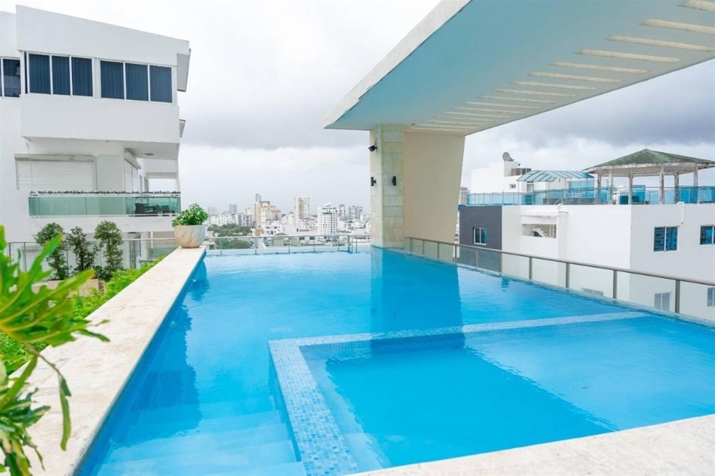 APARTAMENTO AMUEBLADO EN TORRE DE LUJO URB. REAL. CARACTERISTICAS: 110 M2 2 Habitaciones cada con su baño y walk-in closet Baño para visitas Sala / Comedor Cocina abierta con isla Área de lavado Habitación de servicio con su baño 2 Parqueos techados Airbnb Friendly AREA SOCIAL: Lobby de doble altura climatizado 4 ascensores Piscina Infinity Terraza destechada Gimnasio equipado Sauna Salón Multiusos para eventos Área infantil Sala de Cine Pista de caminar al aire libre PRECIO DE VENTA US$275,000 Informacion Robelianny Balcacer 809 666 1571