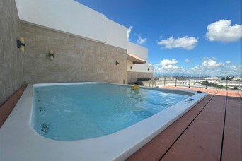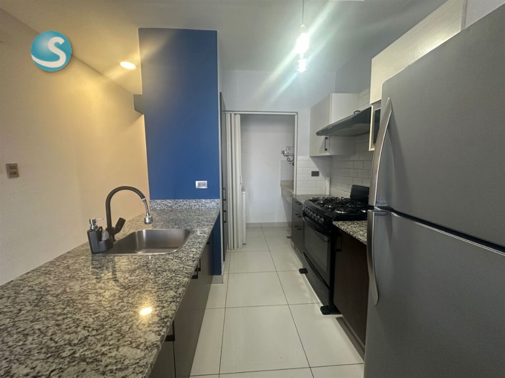 ALQUILER AMUEBLADO EN URB. REAL Características 2 habitaciones ( principal con walk in clóset) 2 baños completos Medio baño de visita Balcón Sala Comedor Cocina Desayunador Área de lavado 1 Parqueo La propiedad tiene Shutters Características de la torre Lobby climatizado Ascensor Planta full Gas común Terraza común Picuzzi Gimnasio Precio de alquiler US$ 1200