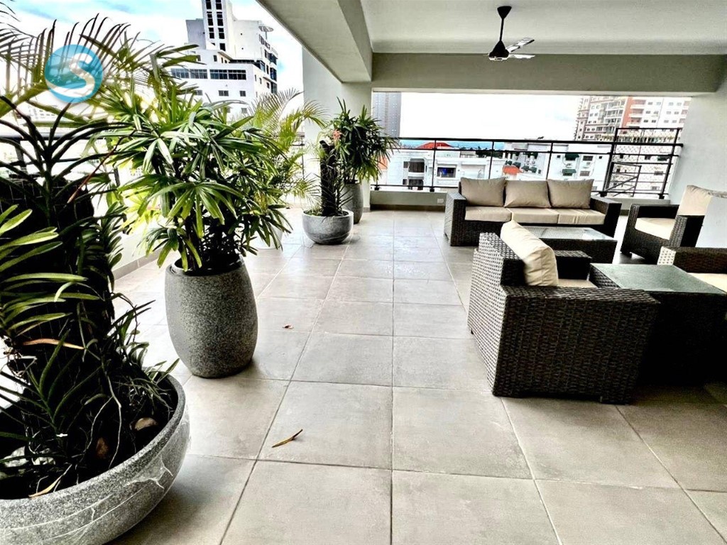 Apartamento Nuevo a Estrenar estrenar con terraza en Urb. Real Una excelente oportunidad de inversión en uno de los sectores más privilegiados de la ciudad. 123 mts Netos de apartamento 100 metros de terraza en el último piso . 2 habitaciones, principal con wc 2.5 baños Balcón frontal Sala - Comedor Cocina Área de lavado cuarto de servicio 2 Parqueos Amenidades: Lobby climatizado Ascensor Planta full Gimnasio Terraza común Seguridad 24/7 + sistemas de cámaras Precio: USD$275,000 Información Maria Canchica 809-995-5805 849-273-5805