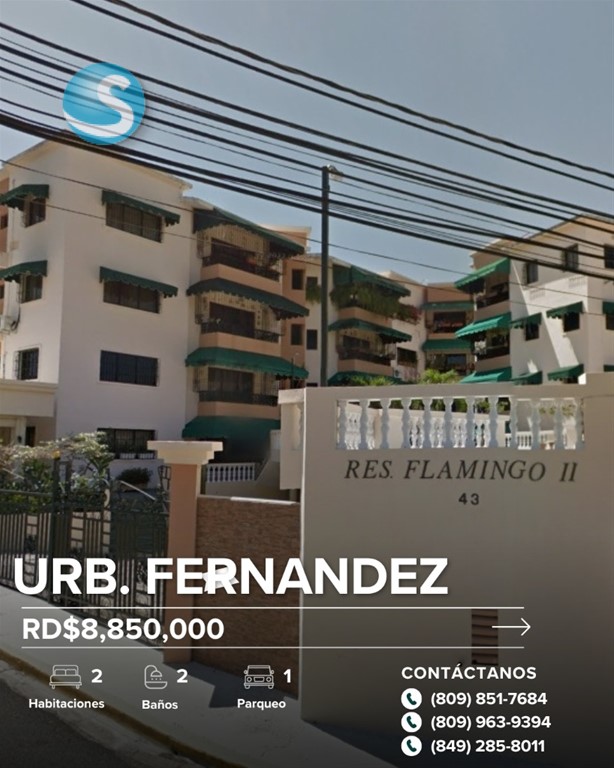 ?? Apartamento en Venta?? Condominio Flamingo II – Urbanización Fernández ?? RD$88500000 (Negociables) Características del Inmueble: ?? Primer nivel ?? 123.26 metros cuadrados ?? Balcón ??? Sala ??? Comedor ?? Cocina ??? 2 Dormitorios (principal con baño privado) ?? 2 Baños ?? Área de Lavado ??? Cuarto de Servicio ?? 1 Parqueo Techado ?? Mantenimiento: RD$5,700.00