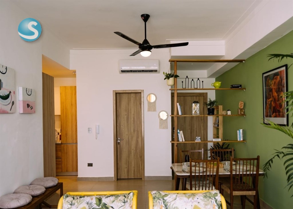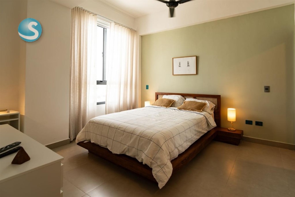 Alquiler a Mediano o Largo Plazo – Urbanización Fernández, Santo Domingo Disfruta de este elegante y completamente amueblado apartamento de 1 habitación, ubicado en el quinto piso del moderno edificio Malmo II, en el exclusivo sector Urbanización Fernández, una de las zonas más seguras, tranquilas y céntricas de Santo Domingo. -- Características del Apartamento * 1 habitación con cama queen * 1.5 baños * Sala amplia con sofá cama * Cocina completamente equipada (estufa Whirlpool, lavadora-secadora, etc.) * Comedor integrado * Balcón con luz natural y vista abierta * Aire acondicionado y abanicos de techo * Internet de alta velocidad - Amenidades del Edificio * Edificio de 6 niveles con ascensor * Gimnasio * Piscina * Seguridad 24/7 y acceso controlado * Un parqueo privado bajo techo en el primer piso * Camaras en areas comunes Disponibilidad Estadía mínima: 3 meses Ideal para profesionales, parejas o personas que trabajen de forma remota. - Desde US$1,500 al mes, incluye mobiliario y mantenimiento e internet. - La electricidad se factura por consumo. - Depósito de garantía: 2 meses. No Incluye: -gas - electricidad Negociable en caso de querer más de 3 meses.