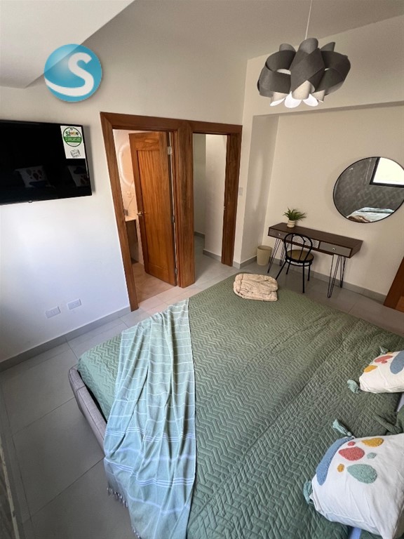 Apartamento en alquiler amueblado nuevo a estrenar de 2 habitaciones en el Julieta Morales detrás del Bravo de la Winston Churchill. Características del apartamento: 2 amplias habitaciones con su baño y closet Recibidor Cocina abierta con desayunador Area de lavado Sala/comedor Baño de visita 2 parqueo techado 2 Piscuzzis con vista a toda la ciudad Rooftop BBQ Y lounge Area techada y completamente amueblada Gimnasio Ascensor de última generación Gas Común con medidor Planta Eléctrica Full Lobby climatizado