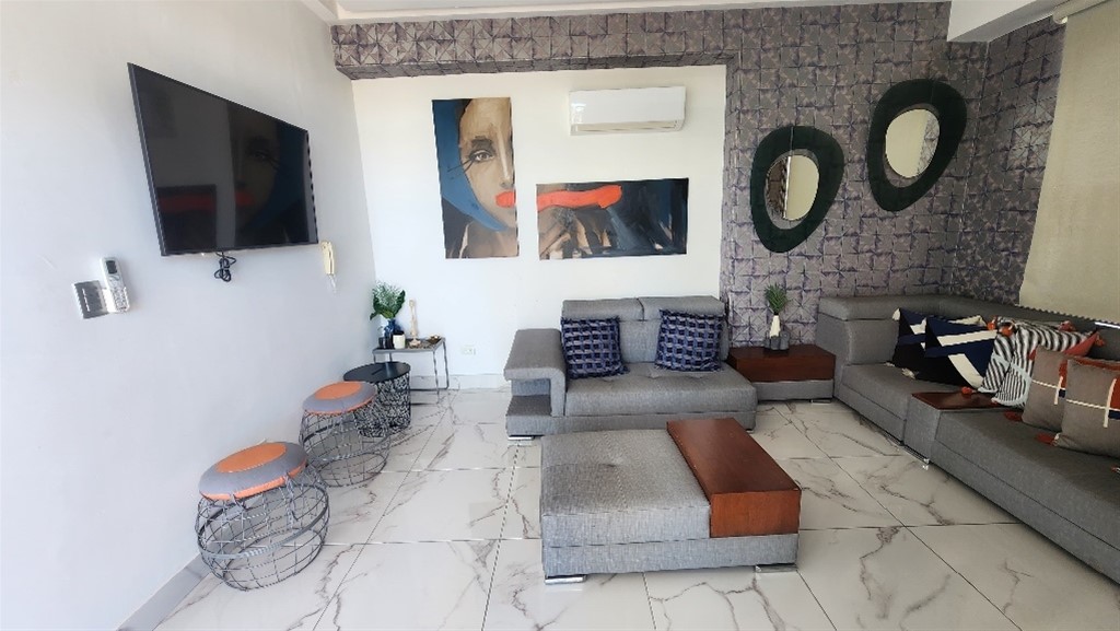 Apartamento en Alquiler en Urbanización Fernandez a una esquina de la ave.Winston Churchill. 1 Habitación 1.5 Baños Balcón Área de lavado. Totalmente Amueblado. 67 Metros. 1 parqueo techado. La torre cuenta con: Piscina Infiniti en Roof .Top Gimnasio. Salón de Eventos amueblado. Área destechada con muebles. Lobby Climatizado. Ascensor. Planta Eléctrica. Seguridad 24/7. Control de Acceso en todas las puertas comunes. Cámaras de Seguridad. Área Bbq. Precio de alquiler amueblado US$1,250 Mantenimiento Incluido.