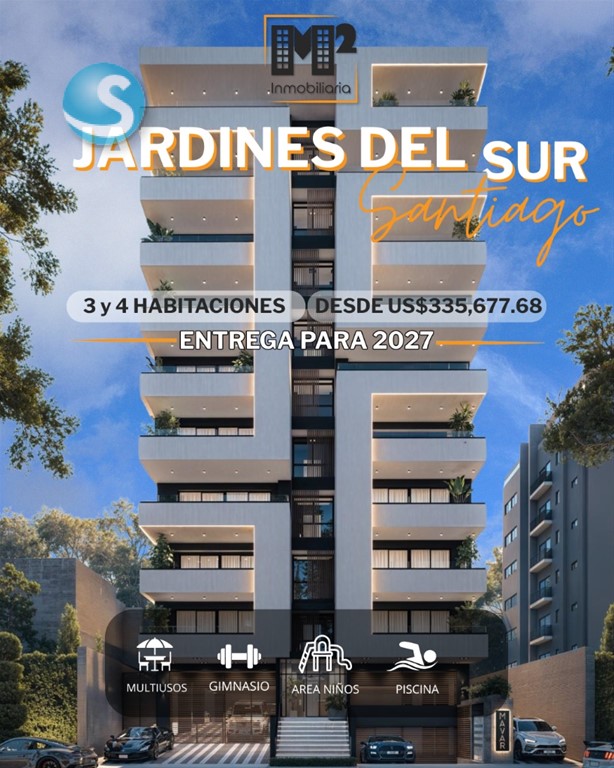 SANTIAGO – JARDINES DEL SUR APARTAMENTOS DE 3 y 4 HABITACIONES 3.5 BAÑOS Tipo Penthouse con doble altura DESDE US$ 335,677.68 ENTREGA: MARZO 2027 AMENIDADES: Área de niños Piscina Gimnasio equipado Lobby moderno Salón multiusos Vive la elegancia y el confort en uno de los sectores más exclusivos de Santiago! Contáctame al 849-248-7505 o envíame un DM para más información