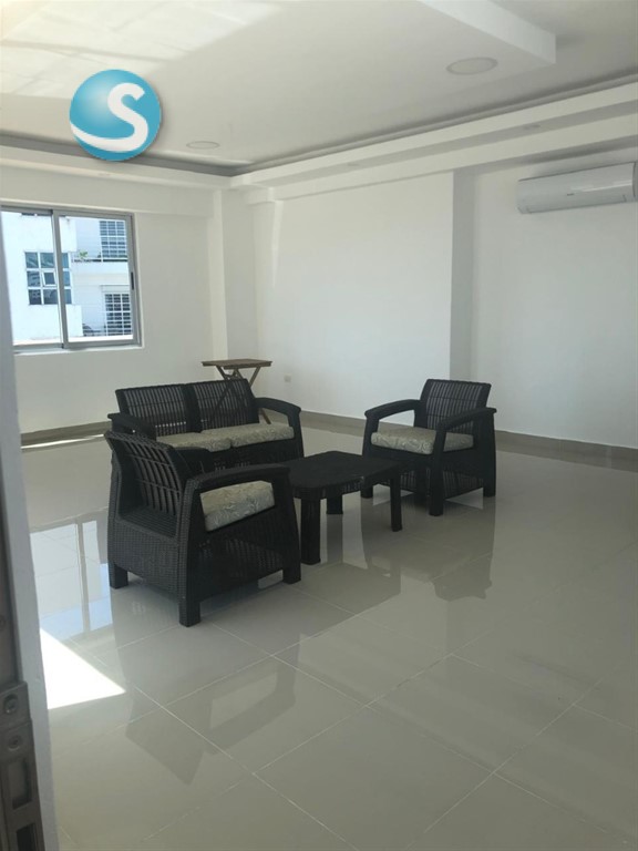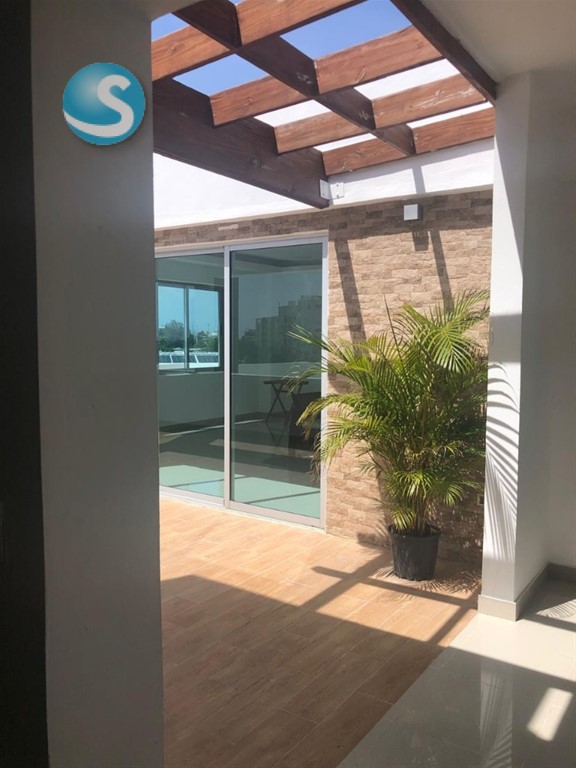 Hermoso apartamento con amplia terraza, 106.58 metros cuadrados. Sala, comedor, cocina, bano de visitas, 1 habitación con su bano y 3 closets y 1 parqueo techado. Torre con lobby, ascensor, planta electrice, gas común, portón eléctrico. Precio de Venta US$160,000 Mantenimiento RD$11,000